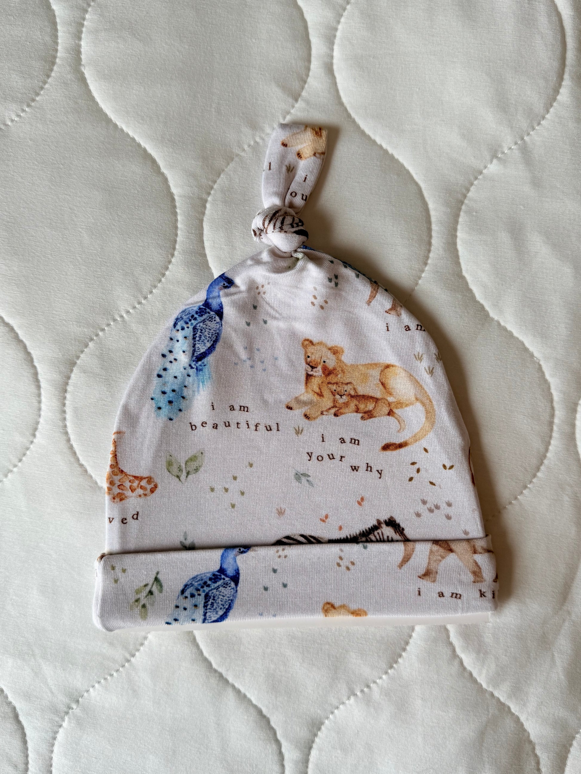 With the signature Wildly Loved safari print and an adorable knot detail on top, it’s the perfect finishing touch for any outfit—whether for newborn snuggles or toddler adventures.